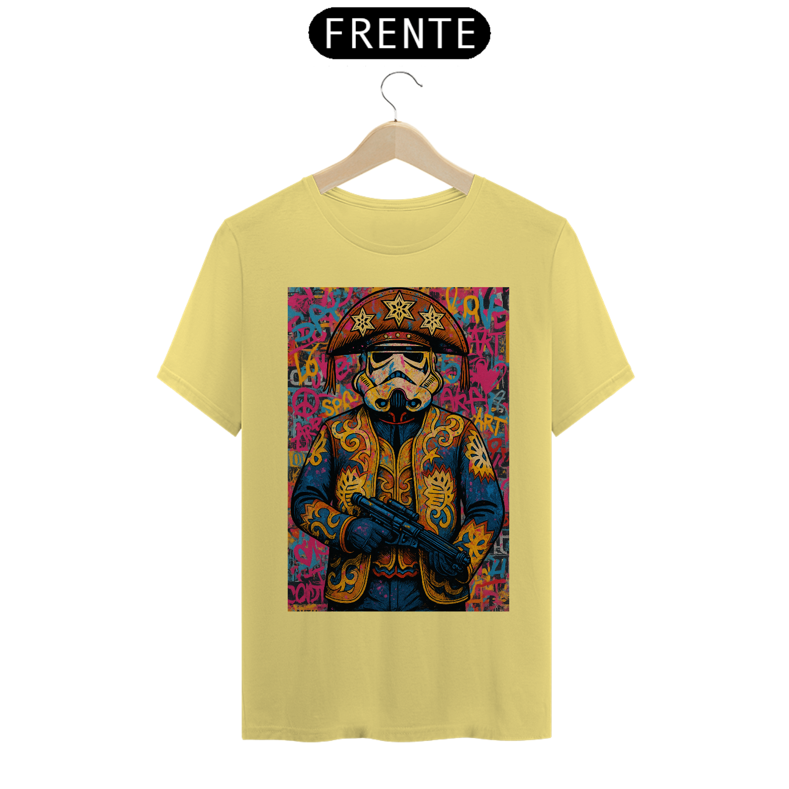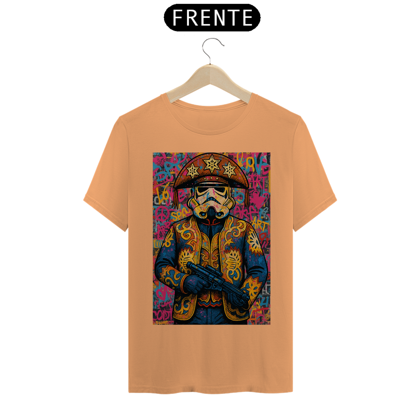 Cores do produto: Como cada tela de computador ou celular tem seu próprio jeito de mostrar cores, então a cor da sua camiseta e da estampa pode ser um pouco diferente do que você viu online.