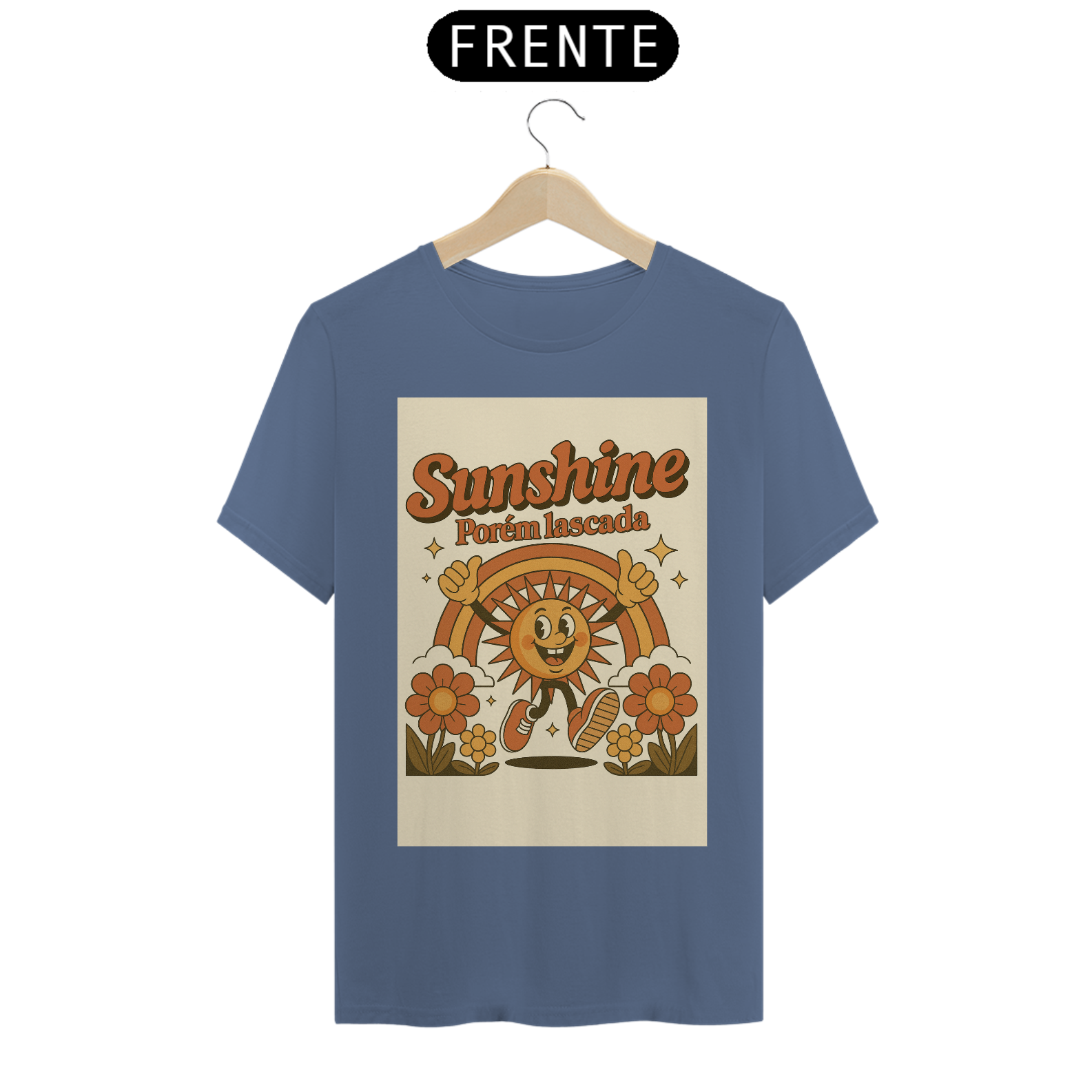 Cores do produto: Como cada tela de computador ou celular tem seu próprio jeito de mostrar cores, então a cor da sua camiseta e da estampa pode ser um pouco diferente do que você viu online.